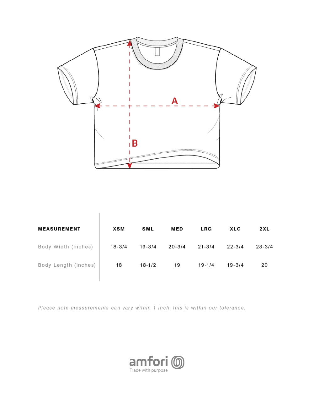 Printed on a stonewash coacl grey heavyweight cropped tee.